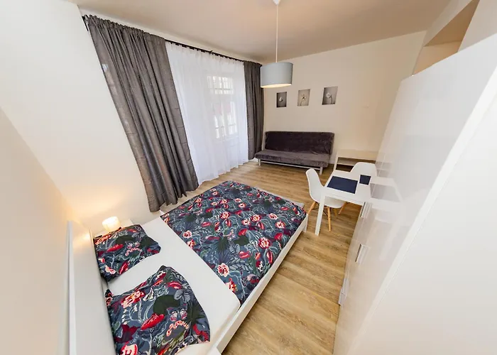 Petrska Apartments ferielejlighed ligger i centrum af Prag, inden for kort afstand til Prags Bymuseum. Indkvarteringen har værelser med en et skrivebord, kaffe- og tefaciliteter, et opholdsområde samt et køkken med kaffemaskiner/tekedler, et køleskab og en kedel.